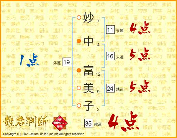 妙中富美子さんの総運は35画の4点!