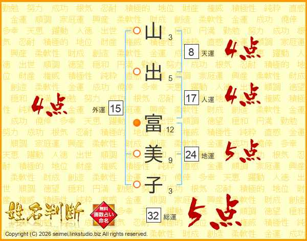 山出富美子さんの外運は15画の4点!