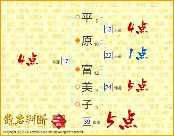 平原富美子さんの総運は39画の5点!