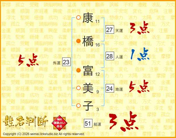 康橋富美子さんの総運は51画の3点!