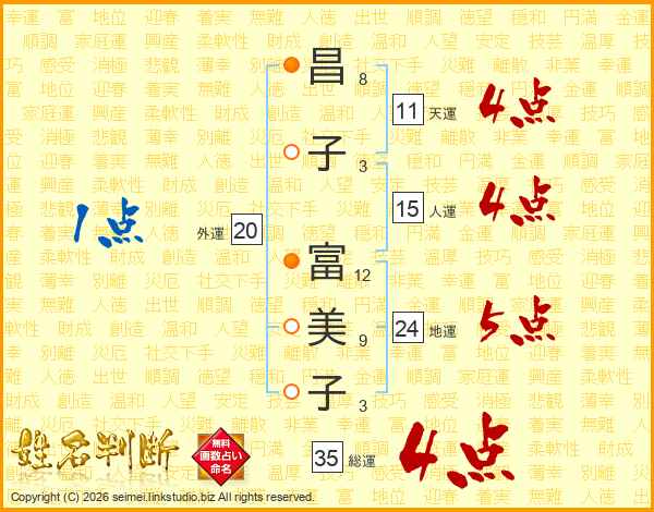 昌子富美子さんの総運は35画の4点!