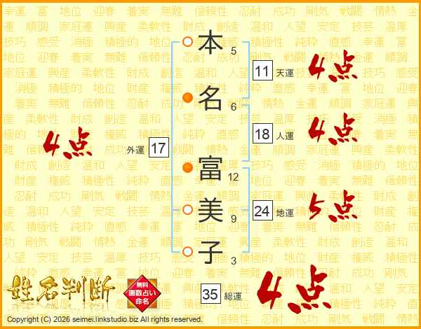 本名富美子さんの総運は35画の4点!