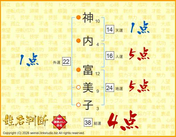 神内富美子さんの総運は38画の4点!