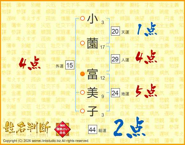 小薗富美子さんの総運は44画の2点!
