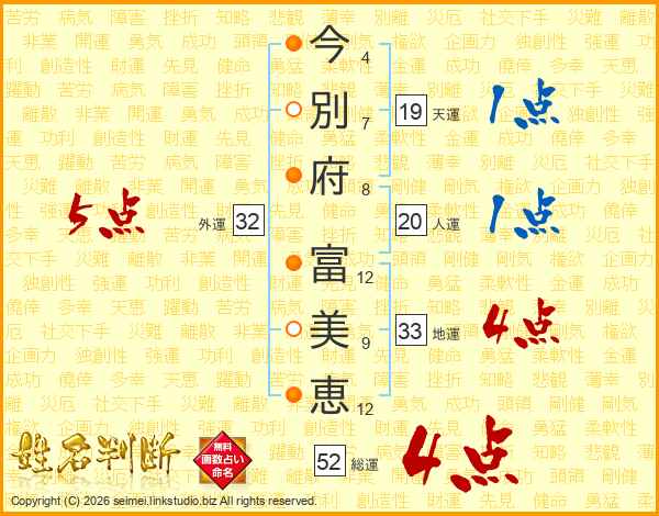 今別府富美恵さんの総運は52画の4点!