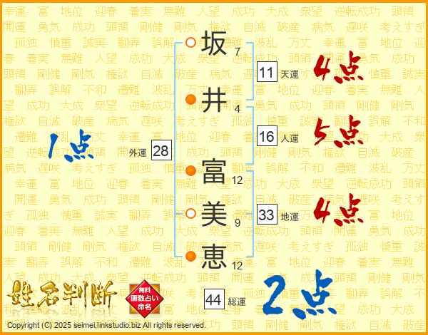坂井富美恵さんの総運は44画の2点!