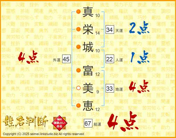 真栄城富美恵さんの総運は67画の4点!