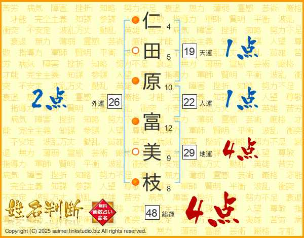 仁田原富美枝さんの総運は48画の4点!