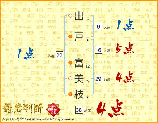 出戸富美枝さんの総運は38画の4点!