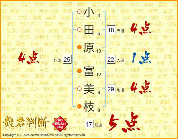 小(3画)田(5画)原(10画) 富(12画)美(9画)枝(8画)