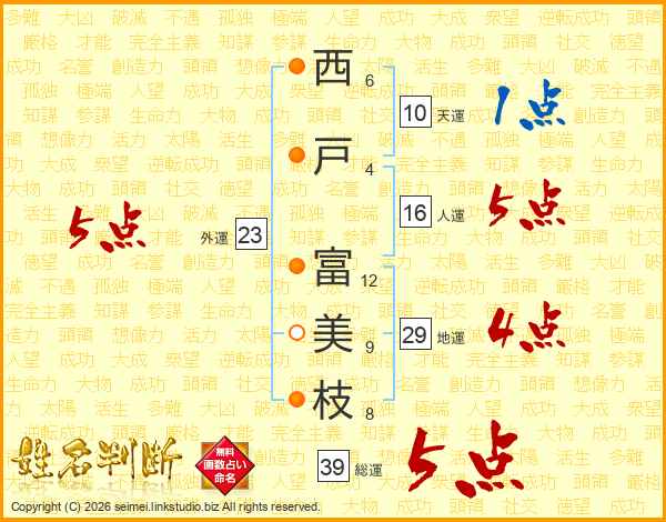 西戸富美枝さんの総運は39画の5点!