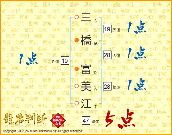 三橋富美江さんの総運は47画の5点!