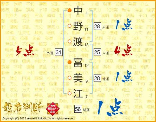 中野渡富美江さんの人運は25画の4点!