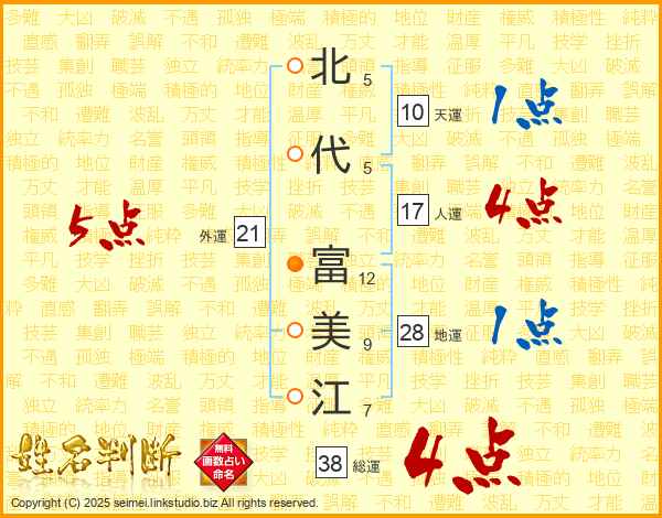 北(5画)代(5画) 富(12画)美(9画)江(7画)