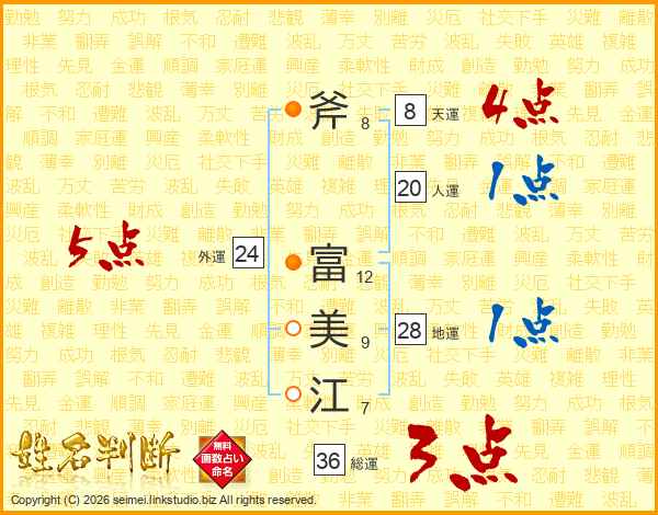 斧富美江さんの総運は36画の3点!