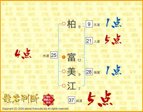 柏富美江さんの総運は37画の5点!