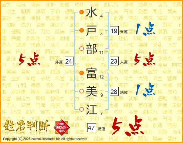 水戸部富美江さんの総運は47画の5点!