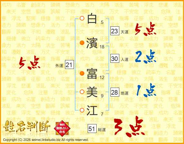 白濱富美江さんの外運は21画の5点!