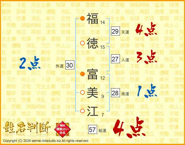 福徳富美江さんの総運は57画の4点!