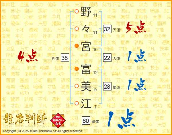 野々宮富美江さんの天運は32画の5点!