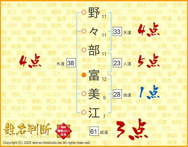 野々部富美江さんの天運は33画の4点!