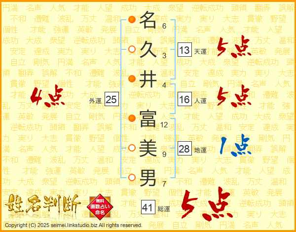名(6画)久(3画)井(4画) 富(12画)美(9画)男(7画)