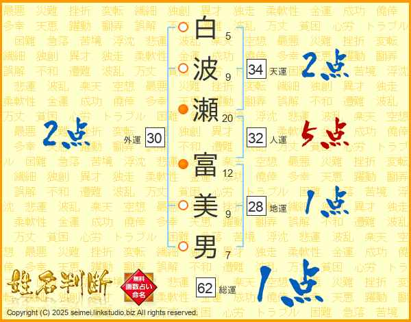 白波瀬富美男さんの天運は34画の2点!