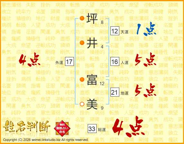 坪井富美さんの外運は17画の4点!