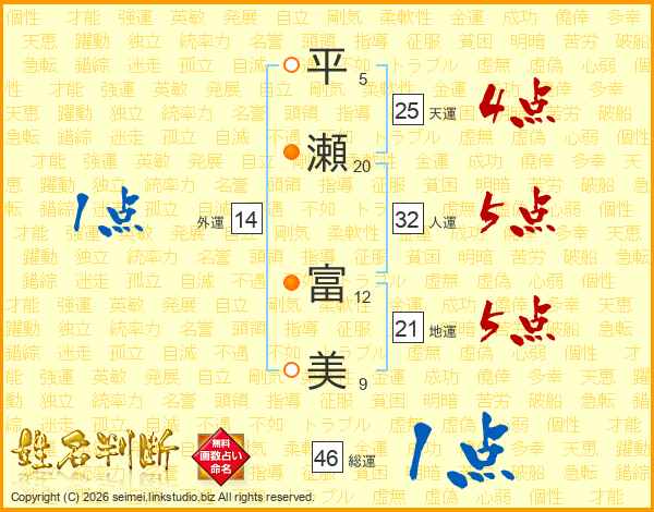平瀬富美さんの総運は46画の1点!