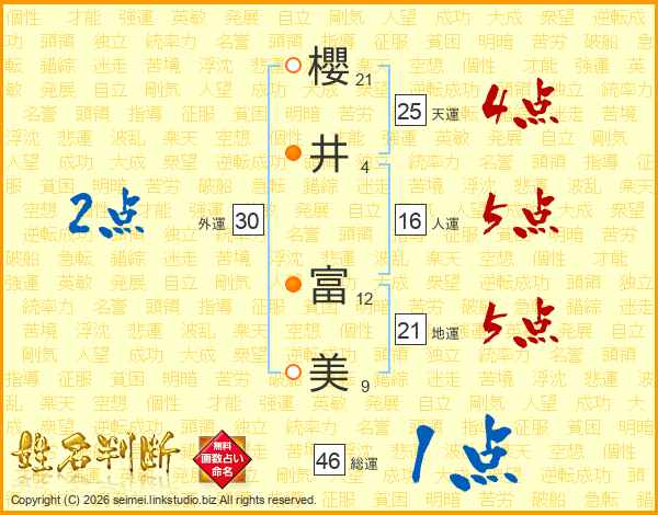 櫻井富美さんの総運は46画の1点!