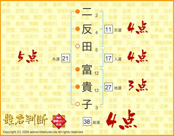 二反田富貴子さんの総運は38画の4点!