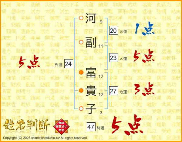 河副富貴子さんの総運は47画の5点!