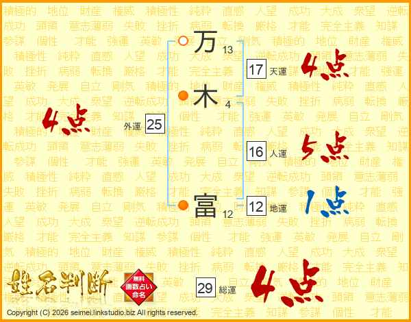 万木富さんの総運は29画の4点!