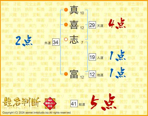 真喜志富さんの総運は41画の5点!