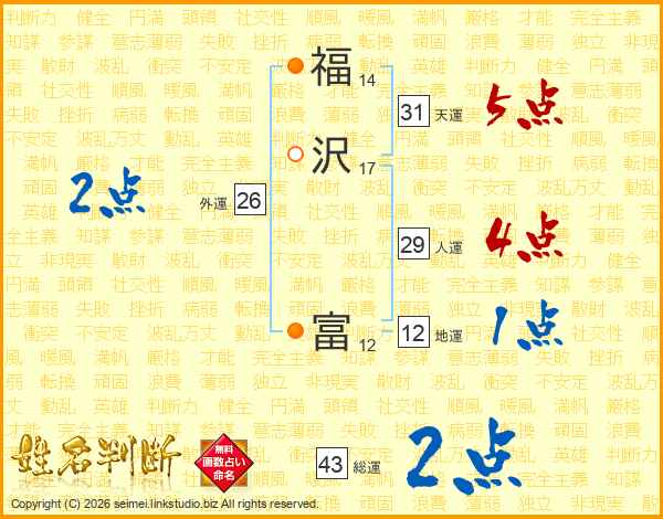 福沢富さんの総運は43画の2点!