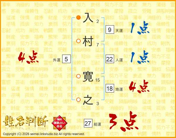 入村寛之さんの総運は27画の3点!