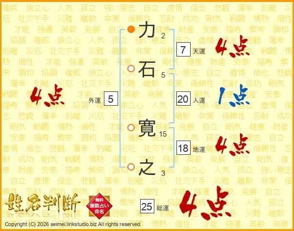 力石寛之さんの総運は25画の4点!