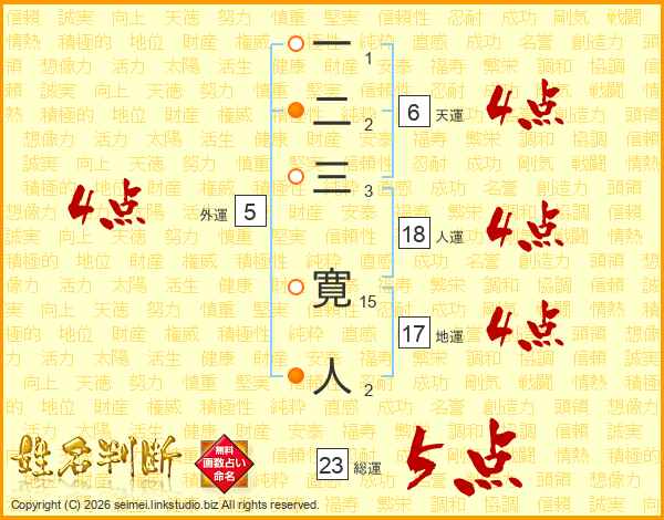 一二三寛人さんの総運は23画の5点!