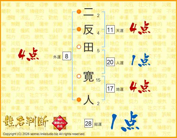 二反田寛人さんの総運は28画の1点!