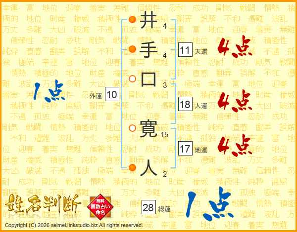 井(4画)手(4画)口(3画) 寛(15画)人(2画)