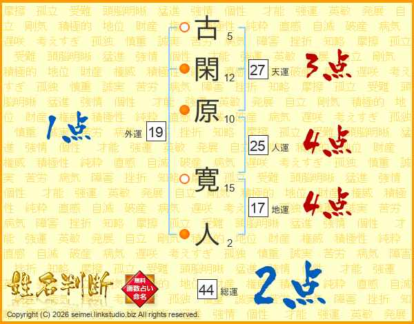 古閑原寛人さんの総運は44画の2点!
