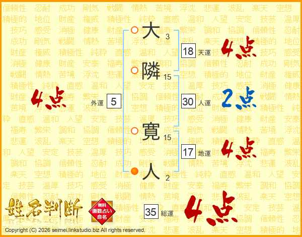 大隣寛人さんの総運は35画の4点!