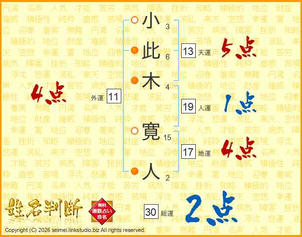 小此木寛人さんの総運は30画の2点!