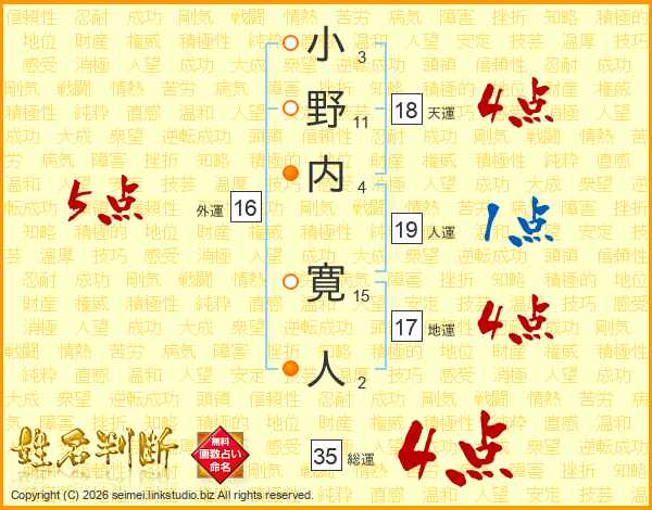 小野内寛人さんの総運は35画の4点!