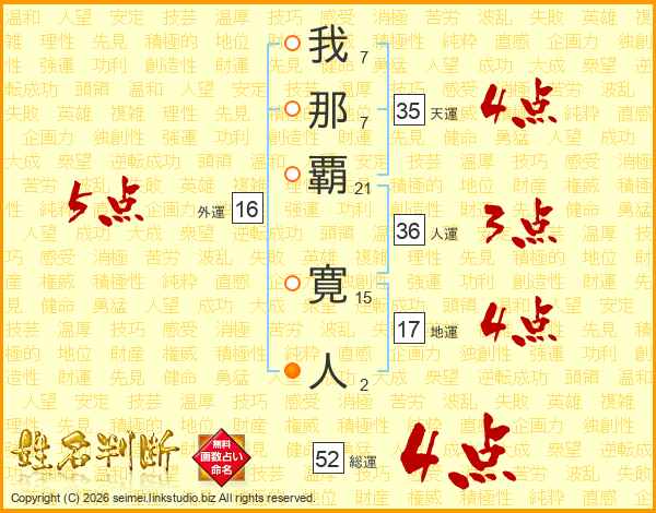 我那覇寛人さんの総運は52画の4点!