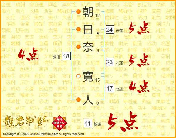朝日奈寛人さんの総運は41画の5点!