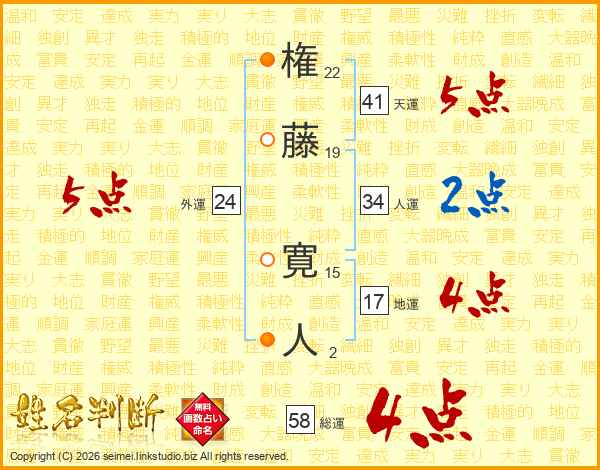権藤寛人さんの総運は58画の4点!