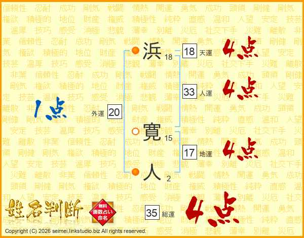 浜寛人さんの総運は35画の4点!
