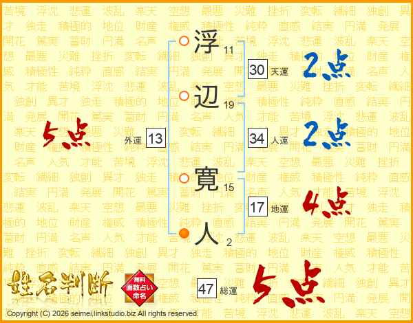 浮辺寛人さんの総運は47画の5点!