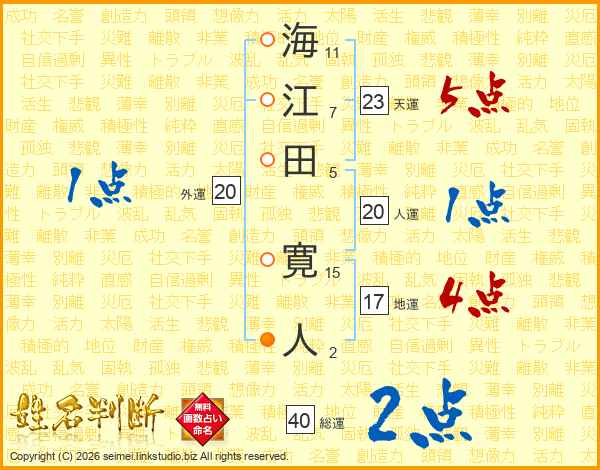 海江田寛人さんの総運は40画の2点!